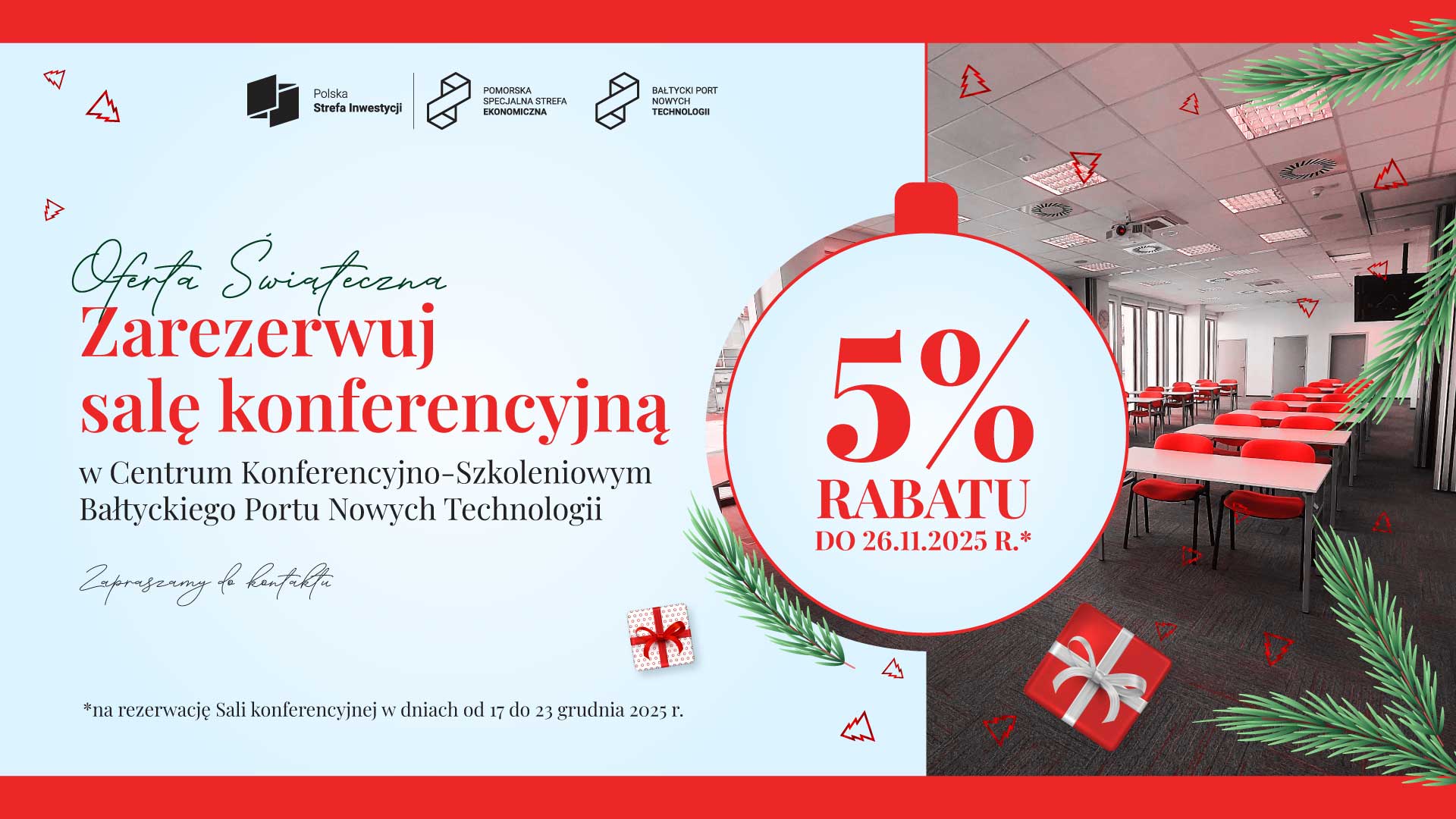 Otrzymasz 5% rabatu do 26 listopada na rezerwację Sali konferencyjnej w dniach od 17 do 23 grudnia 2025 r.